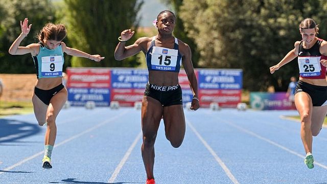 Kelly Doualla non smette più di stupire e migliora il suo fresco record italiano under 20 dei 100 metri, pur se di un solo centesimo, correndo in 11"36 nella vittoriosa finale dei campionati italiani allieve in corso di svolgimento a Rieti. Per la 15enne fenomenale velocista azzurra di origini camerunensi il crono viene addirittura realizzato con un vento contrario di -1,4 m/s, e questo da ancor maggior spessore al risultato ottenuto al termine di una gara dominata con una corsa efficacissima, dove va segnalato il secondo posto di Margherita Castellani con 11"70, un'altra giovanissima velocista con ottime prospettive per il futuro, peraltro più specialista nei 200 metri dove sarà impegnata domani.