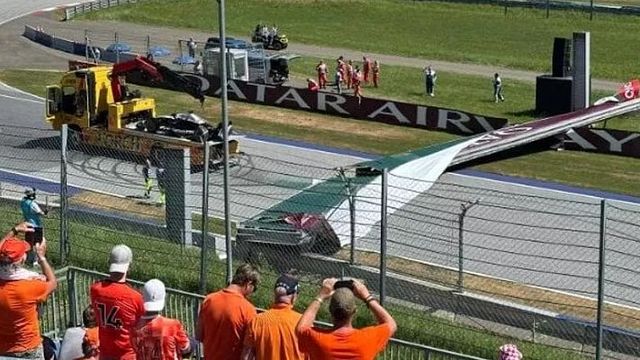 Incidente sulla pista di Spielberg a poche ore dal via del Gran Premio di Formula 1. Al termine della gara di F2 una gru, arrivata per recuperare un veicolo rimasto bloccato nella ghiaia, non ha ritratto il braccio meccanico e ha colpito un arco pubblicitario che si è schiantato sulla pista. Nessuno è rimasto ferito nell'incidente. I commissari di gara al Red Bull Ring - circa 30 quelli in servizio - hanno lavorato per rimuovere i singoli pezzi dalla pista. Anche una recinzione è stata danneggiata.