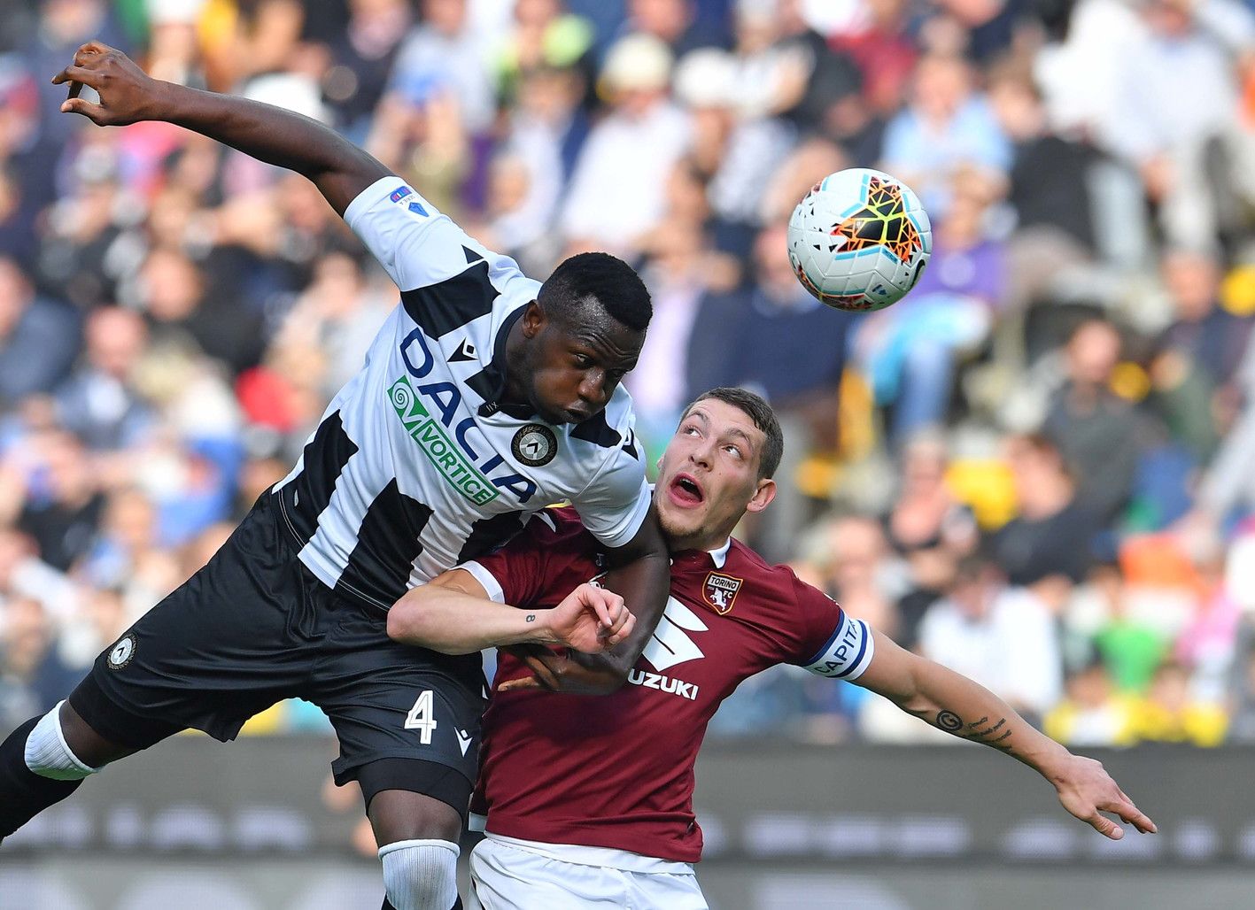 Il Torino ha ottenuto soltanto una vittoria nelle ultime cinque partite, ma a partire forte, anzi fortissimo, è l'Udinese, che dopo due minuti sciupa clamorosamente il gol del vantaggio con Okaka, che da due passi e a porta vuota mette fuori sulla ribattuta del palo dopo una grande azione personale di Sema. Passato lo spavento iniziale il Toro prova a reagire, ma sono sempre i padroni di casa a fare la partita: dopo un'altra occasione per Okaka, Jajalo costringe Sirigu ad un intervento difficile per salvare i suoi (15'). Dopo i 'fuochi d'artificio' iniziali, i granata prendono le misure agli avversari e la gara diventa molto più equilibrata, ma gli uomini di Mazzarri, attivi soprattutto sulla fascia di Ansaldi, non riescono a creare pericoli dalle parti di Musso e Belotti davanti è troppo solo. Il risultato è che il portiere bianconero vive praticamente un primo tempo da spettatore non pagante, mentre dall'altra parte Sirigu è ancora attento sui tentativi da fuori di Jajalo e De Paul (38'). Il predominio dell'Udinese viene premiato poi poco prima della fine della prima frazione, quando Mandragora è bravissimo a giocare di sponda sul cross del solito Sema e a spalancare la porta per Okaka, che stavolta non sbaglia e firma l'1-0 con cui si va all'intervallo.
