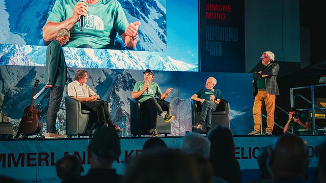 La notizia dell'assenza di Messner ha rattristato i presenti ma è stata accolta con gratitudine per tutto ciò che il leggendario alpinista e uomo avventura altoatesino ha rappresentato e continua a rappresentare nella storia della montagna e i quella degli ambienti più estremi e inospitali della Terra. Il team che ha lavorato all'evento (con il supporto e la preziosa collaborazione di Simone Moro) ha operato con impegno per offrire ugualmente al pubblico un evento all’altezza delle aspettative. Missione compiut anche in questo caso. Sul palco insieme allo stesso Simone e a Kammerlander è infatti salito un ospite d’eccezione: Krzysztof Wielicki, grande alpinista polacco, che con grande generosità ha accettato di unirsi in modalità... last minute, completando così il trio della serata. Wielicki è uno dei più grandi interpreti dell’età d’oro dell’himalaysmo: è stato il quinto uomo a scalare tutti i quattordici "ottomila" del pianeta e il primo a compiere una salita invernale sull’Everest nel 1980, aprendo così un nuovo capitolo nella storia dell’alpinismo himalayano.