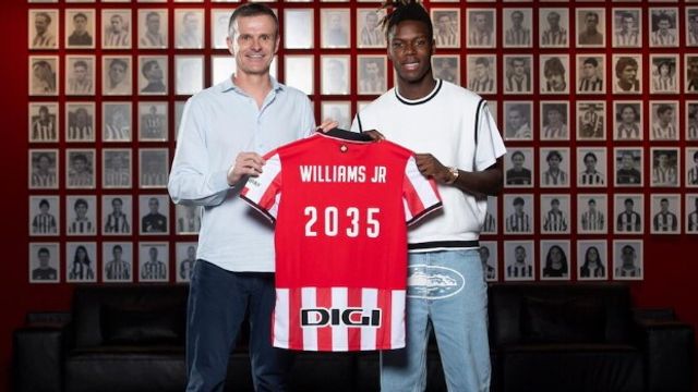 Mancava solo la firma, arrivata oggi per legare ufficialmente Nico Williams all'Athletic Bilbao fino al 2035. Dopo il grande rifiuto al Barcellona, l'attaccante spagnolo ha deciso di giurare amore eterno al club basco, che ha commentato così con una nota ufficiale: "Nico Williams punta a continuare a scrivere la storia con l'Athletic Club, con cui ha firmato oggi al San Mamés un importante contratto, estendendolo fino al 30 giugno 2035, il più duraturo per la prima squadra. Si aggiungono otto anni al precedente contratto, firmato questo pomeriggio insieme al presidente Jon Uriarte, al direttore generale Mikel González e al fratello e capitano Iñaki Williams. Erano presenti anche sua madre María Arthuer, ambasciatrice del 125° anniversario dell'Athletic Club, e i suoi amici, che gli hanno fatto un regalo a sorpresa: un dipinto. La famiglia biancorossa è fortunata".