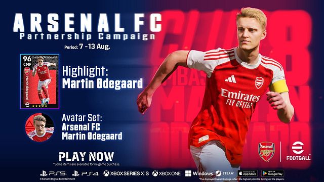 Konami Digital Entertainment B.V. – KONAMI e Arsenal hanno annunciato l'estensione della partnership che vede il proseguimento della collaborazione attiva da 8 anni, con KONAMI che si conferma Official Football Video Gaming Partner dell'Arsenal Football Club. Per celebrare il rinnovo della partnership e la nomina del capitano Martin Ødegaard a nuovo Club Ambassador, i giocatori potranno ottenere, gratuitamente dal 7 al 13 agosto, Avatar e carta Highlight: Martin Ødegaard. Inoltre, i tifosi potranno continuare a utilizzare l'Arsenal come uno dei principali club di eFootball, con maglie ufficiali e l'Emirates Stadium. Il rinnovo vede KONAMI mantenere molteplici diritti commerciali sul club, tra cui accesso ai giocatori e utilizzo delle immagini e del brand nella serie eFootball.