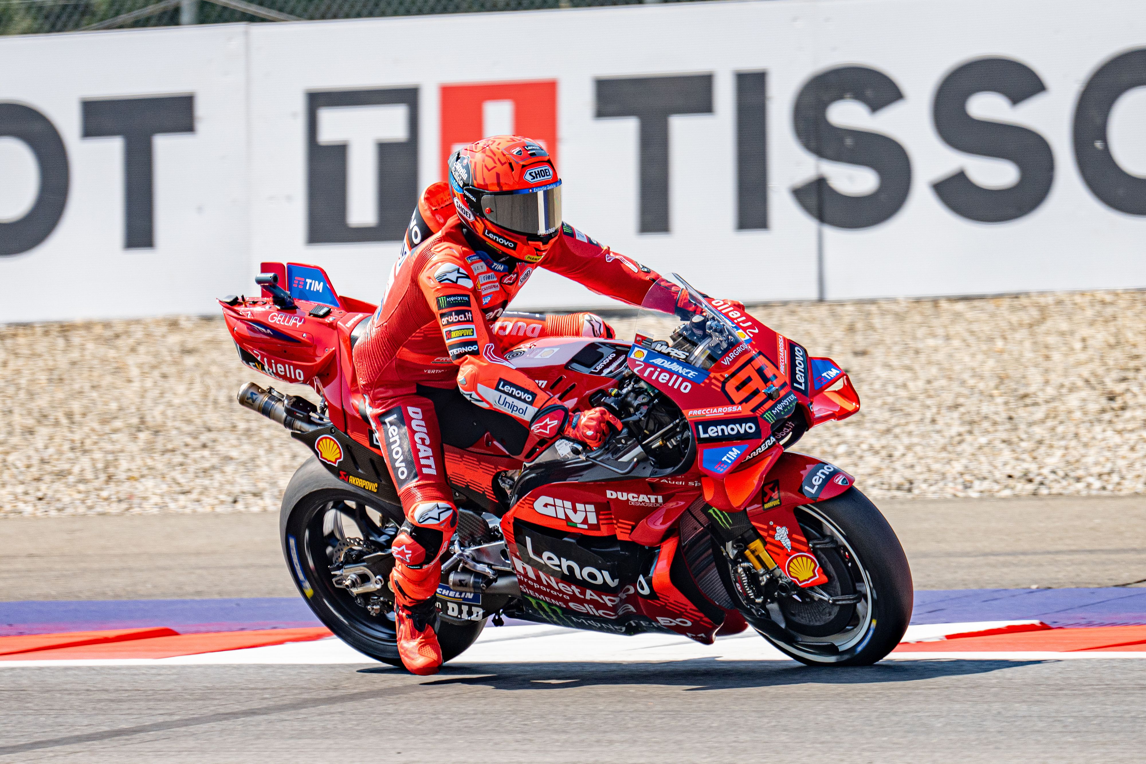 Il venerdì della MotoGP in Austria si chiude con l'ennesima firma di Marc Marquez. In una sessione andata per le lunghe per la bandiera rossa causata dalle cadute delle Yamaha di Quartararo e Oliveira (forse provocate da perdita di olio dell'altra Prima Pramac di Jack Miller), il pilota spagnolo piazza la sua Ducati davanti a tutti in 1:28.117 precedendo di due decimi il connazionale Pedro Acosta in KTM e l'altra Ducati factory di Francesco Bagnaia. In top 5 anche Alex Marquez con la Ducati Gresini seguito dall'Aprilia Trackhouse di Raul Fernandez.