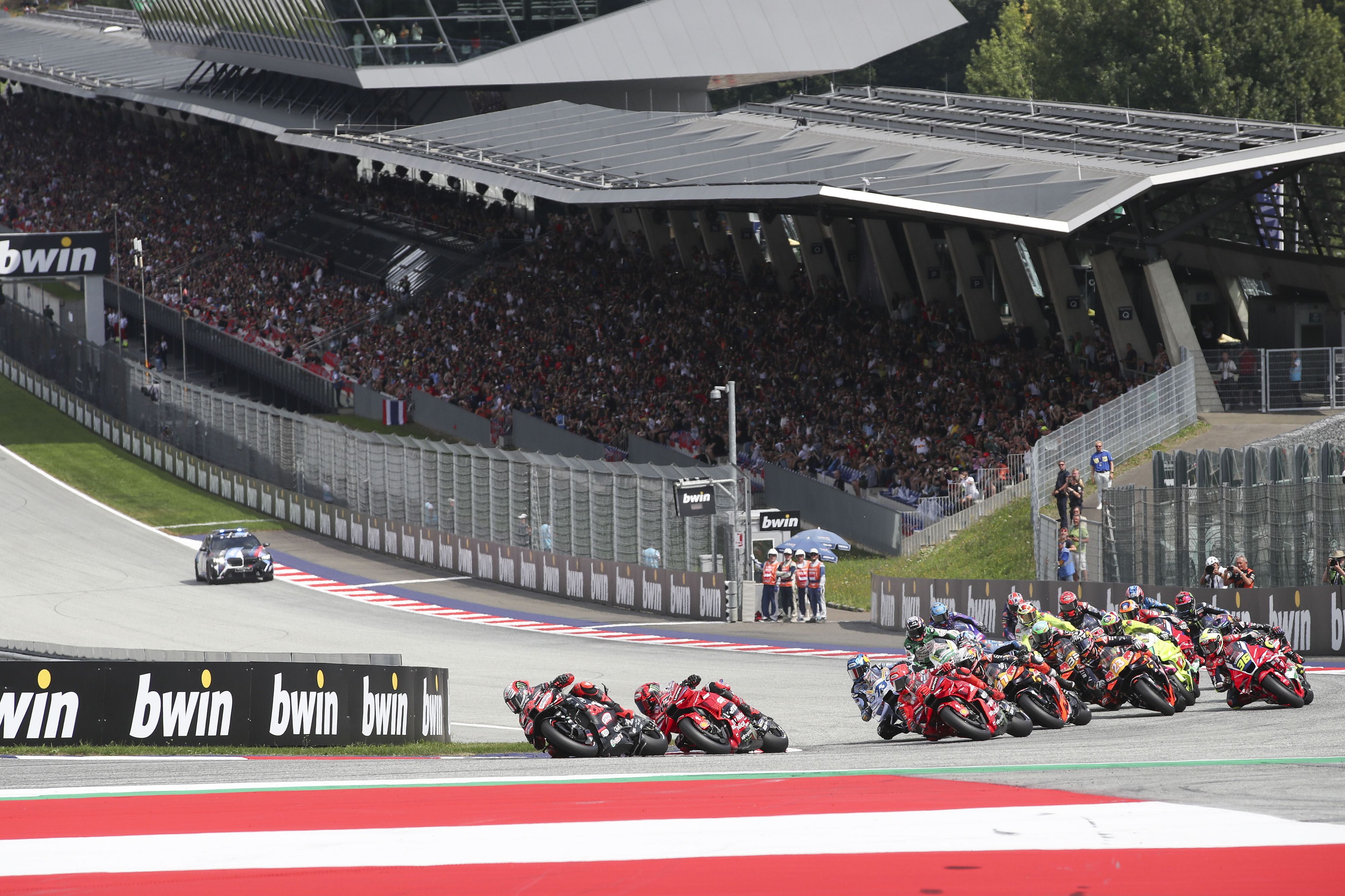 Marc Marquez suona la nona in Austria e - dopo aver inseguito Marco Bezzecchi per metà gara - vince la resistenza dell'autore della poe position e - alla ripresa del Mondiale dopo la pausa estiva - mette a segno la sesta vittoria consecutiva e la nona appunto della sua straordinaria stagione. Prima vittoria in assoluto in Austria per l'otto volte (quasi nove) campione del mondo. Secondo posto per Fermin Aldeguer che prima raggiunge Francesco Bagnaia e Pedro Acosta e poi approfitta della loro bagarre per passare entrambi, poi si lancia all'inseguimento di Marquez Sr. e di Bezzecchi, passando l'italiano. Terzo gradino del podio per Bezzecchi al termine di una prova volitiva, nella quale l'italiano ha provato a ribattere al Cannibale spagnolo, replicando al suo primo assalto. Mai prima d'ora Aprilia aveva raggiunto il podio MotoGP in Austria.