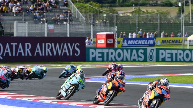 Il programma delle gare del Gran Premio di San Marino e della Riviera di Rimini inizia con la vittoria (l'ottava in stagione) del leader del Mondiale José Antonio Rueda con la KTM del team Red Bull Ajo. Il pilota spagnolo, a lungo in testa, si riprende all'ultima curva prima della bandiera a scacchi la prima posizione che gli era stata sottratta nella bagarre finale dal connazionale Maximo Quiles con la KTM Aspar Team, autore di un ultimo giro fenomenale. Rueda la spunta allo sprint per 113 millesimi, mentre sono solo quattro i millesimi che separano il rookie Quiles dall'altro spagnolo Adrian Fernandez con la Honda Leopard Racing, autore di una prova tutta in progressione. Quarto posto per l'australiano Joel Kelso con la KTM LEVEL-UP MTA. Angel Piqueras (KTM MT Helmets - MSI) e Valentin Perrone (KTM Red Bull Tech3) chiudono quinto e sesto. Lo spagnolo Piqueras perde ancora terreno da Rueda nella classifica generale, mentre l'argentino Perrone non riesce a sfruttare fino in fondo la sua pole position del sabato. Settimo posto per David Munoz che - dopo un errore iniziale che lo aveva precipitato nelle retrovie - in sella alla KTM Intact GP riprende e rimonta appunto fino alla seconda metà della top ten che - dopo di lui - prosegue con Ryusei Yamanaka (KTM MT Helmets - MSI), con l'italiano Guido Pini sulla KTM Intact GP (migliore dei nostri in una gara al solito dominata dalla Spagna) e si chiude con... lo spagnolo Alvaro Carpe (Red Bull KTM Ajo).
