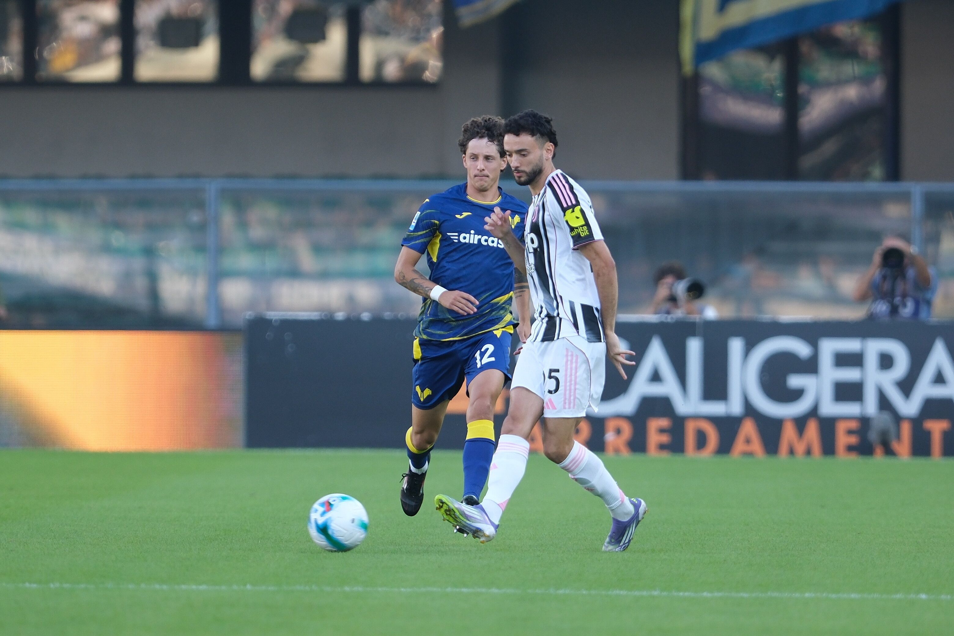 Zanetti conferma, Gagliardini infortunato a parte, la formazione scesa in campo dal 1' contro la Cremonese. Akpa Akpro in mezzo al campo, in attacco Giovane e Orban. Cinque novità per Tudor rispetto al Borussia Dortmund: in difesa rifiata Bremer, prima da titolare per Joao Mario. Ci sono Conceiçao e Yildiz alle spalle di Vlahovic, alla 150a in Serie A e preferito a David e Openda. La prima occasione al Bentegodi la creano i padroni di casa all'11: retropassaggio di testa corto di Gatti, Di Gregorio in uscita mura Orban. Scampato il pericolo, la Juventus sblocca il match al 19': Conceiçao vince il rimpallo con Bernede, salta netto Serdar e dal limite fa partire un sinistro rasoterra che buca Montipò. Bella la giocata individuale dell'attaccante portoghese. I bianconeri, però, smettono di spingere e pensano a gestire il vantaggio. La manovra in mezzo al campo è lenta e prevedibile, con Locatelli che sbaglia davvero tanti palloni. Vlahovic, invece, viene davvero servito con il contagocce e non riesce mai a rendersi pericoloso, così come Yildiz, più al centro del gioco ma poco incisivo. La prima frazione sembra scorrere via senza più niente di significativo fino al 41': lunga rimessa di Bradaric, Nelsson manca la sponda di testa ma Joao Mario alle sue spalle con il braccio largo colpisce il pallone. Rapuano viene richiamato dal Var e assegna il rigore per l'Hellas. Sul dischetto si presenta Orban, Di Gregorio intercetta il tiro dell'attaccante nigeriano, ma il pallone sbatte sulla traversa e finisce in porta. Poi l'attaccante nigeriano rischia grosso per una gomitata a Gatti: per Rapuano è solo ammonizione e il Var non interviene, facendo andare su tutte le furie Tudor nel post-partita. All'intervallo tutto da rifare per la Juventus.