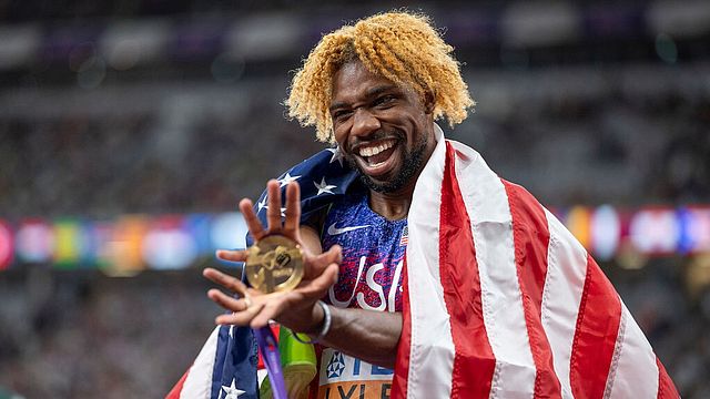 La formazione USA schierata anche con Christian Coleman in prima, Kenny Bednarek in seconda e Courtney Lindsey in terza, rimane sempre in testa nonostante un primo cambio non eccelso, e per il 28enne Lyles questo ennesimo successo rappresenta la seconda medaglia d'oro dei campionati, il terzo podio con il bronzo nei 100 metri, ma anche l'ottavo oro in assoluto della sua ancor giovane carriera oltre che il decimo podio globale.