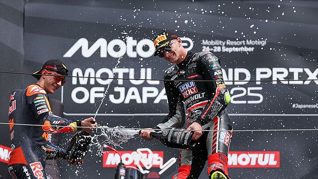 David Muñoz ha vinto il GP del Giappone e conquistato il suo terzo successo stagionale in Moto3. Lo spagnolo del team Dynavolt ha tenuto botta fino alla bandiera scacchi e tagliato il traguardo in solitaria con oltre un secondo e mezzo di vantaggio sui connazionali José Antonio Rueda e Maximo Quiles, che hanno completato il podio. A vuoto invece il tentativo di attacco all'ultimo giro dell'argentino Perrone, che si è dovuto accontentare della quarta piazza.