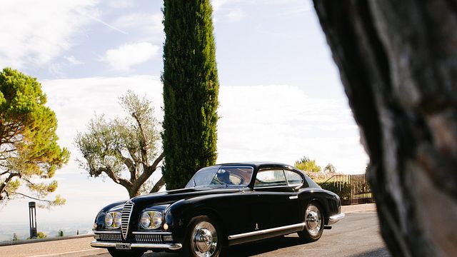 Aerodynes: Alfa Romeo 6C 2500 SS Berlinetta Pinin Farina (1950) – Corrado Lopresto. Un esemplare unico, realizzato da Pinin Farina considerato la prima vettura della storia con doppi fari anteriori.