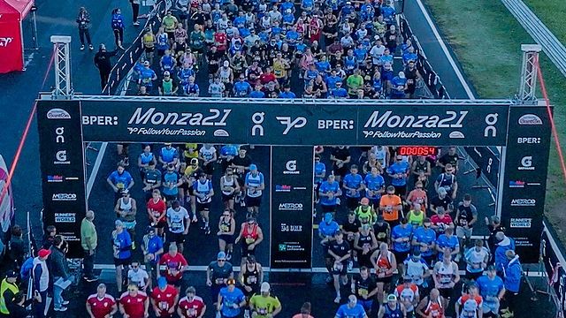 Mass start per tutte le distanze running pochi minuti dopo le nove del mattino della domenica, con i toprunners schierati per tutta la larghezza della pista a ridosso della linea di partenza, "avanguardia" di una sterminata starting grid che arriva fino alla linea del traguardo, che a Monza (per le corse automobilistiche) è posizionato nel punto in cui il nastro d'asfalto si raddrizza, all'uscita della Parabolica, oggi intitolata a Michele Alboreto, pilota della Ferrari intorno alla metà degli Anni Ottanta.