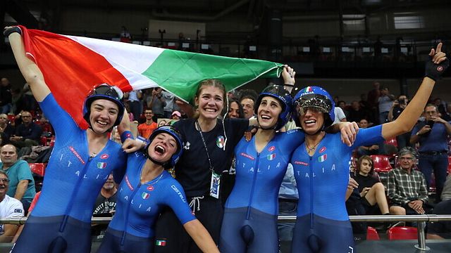 Arriva subito una medaglia d'oro per l'Italia ai Mondiali di Ciclismo su pista, in corso di svolgimento a Santiago del Cile. La conquistano le ragazze dell'inseguimento a squadre Martina Fidanza, Federica Venturelli, Vittoria Guazzini e Chiara Consonni, che in finale hanno battuto la Germania campione uscente con un tempo di 4'09"569. Medaglia di bronzo per la Gran Bretagna e quarto posto per il Belgio. L’Italia femminile aveva vinto la medaglia d’oro nell’inseguimento a squadre anche ai Mondiali del 2022 in Francia, dove al posto di Venturelli c’era Elisa Balsamo.