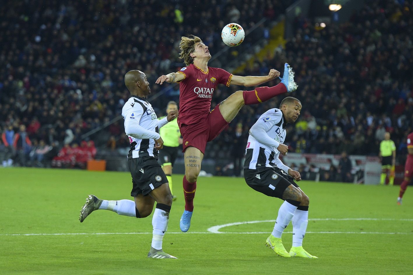 Zaniolo 7 - Terzo gol consecutivo, il primo in trasferta nella sua carriera da giallorosso. Glaciale davanti al portiere, con le sue cavalcate sulla destra ha messo in grossa difficoltà la retroguardia friulana, dialogando bene con Kluivert, Dzeko e Pastore.