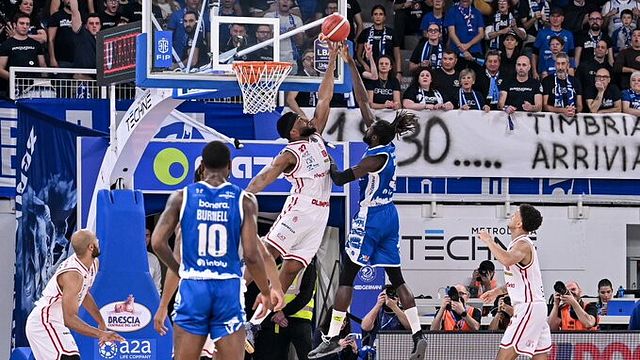 Il consueto calo nella fase centrale del match costa carissimo all'EA7 Emporio Armani Milano, che perde il derby contro la Germani Brescia. Esulta dunque la Leonessa, che resta in vetta alla Serie A di basket con la Virtus Bologna: cinque vittorie e un ko per entrambi. Bilan (23 punti) e compagni la spuntano col punteggio di 98-92, dopo aver toccato il +16 con cinque giocatori in doppia cifra. Non bastano i 28 punti di Brooks, all'Olimpia.