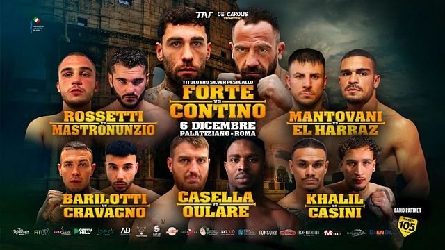 Nel main event, Mauro Forte (21-1, due pareggi) affronterà l’imbattuto Salvatore Contino (10-0) per il titolo EBU Silver dei pesi gallo, un duello ad altissima intensità tra esperienza, ambizione per una storia tutta da scrivere.