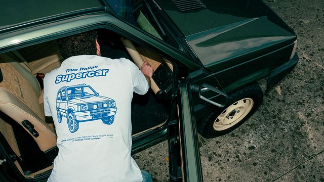Garage Italia ha deciso di costruire una collezione attorno alla mitica 4X4. Basta non su un modello di serie ma, ovviamente, sulla versione personalizzata dalla stessa azienda. Al gruppo di creativi non manca di certo l'ironia, come dimostra la T-shirt che, oltre all'immagine del veicolo, mostra la scritta "True Italian Supercar". Il riferimento è all'abilità della Panda di adattarsi a qualunque contesto di utilizzo: dalla città, alla montagna, alla spiaggia. Tutte cartoline che qui in Italia conosciamo bene.