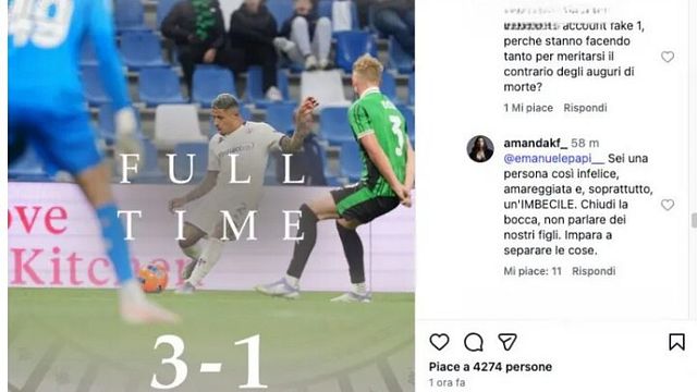 Minacce e insulti sono stati rivolti via social alle mogli e alle compagne dei giocatori della Fiorentina dopo l'ennesima sconfitta rimediata oggi a Reggio Emilia contro il Sassuolo. A denunciarlo attraverso il proprio profilo su Instagram la consorte del terzino brasiliano Dodo, Amanda Ferreira, che come riportato da alcuni siti che si occupano di Fiorentina ha chiesto aiuto e l'intervento delle autorità preposte e risposto duramente, postando lo screenshot, all'autore di uno di questi messaggi d'odio in cui vengono coinvolti i figli della coppia. Anche le compagne di altri giocatori viola sarebbero state bersaglio di messaggi offensivi e minacciosi e avrebbero sporto denuncia.