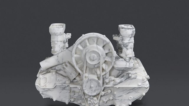 Lo scultore ha deciso di omaggiare la genesi della vettura a motore posteriore centrale più famosa del mondo. Il sei cilindri del 1963 è stato scolpito a partire da un singolo blocco di marco di Carrara: dopo la sgrossatura, l'oopera nella sua forma definitiva ha un peso di 700 kg. Casper non si è limitato al solo propulsore ed ha realizzato anche il cambio e il sistema di scarico.