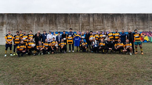 "Rugby Oltre le Sbarre”: il progetto di responsabilità della Federazione Italiana Rugby nasce con l’obiettivo di diffondere il gioco del rugby come strumento educativo e di inclusione sociale, contribuendo al percorso di risocializzazione delle persone detenute attraverso l’applicazione concreta dei valori fondanti di questo sport. L'iniziativa prevede l'incontro tra atlete e atleti delle Nazionali Italiane di Rugby e gli atleti detenuti, condividendo momenti di gioco, confronto e convivialità. Macron, che già da diversi anni sostiene attivamente diversi programmi sportivi di rieducazione all’interno delle case circondariali, ha sposato in maniera naturale il progetto, donando il materiale tecnico e vestendo tutti gli atleti coinvolti. Il primo evento del 2026 di “Rugby Oltre le Sbarre” si è svolto a Bologna e ha coinvolto il Giallo Dozza Bologna Rugby, che grazie alla normativa specifica rivolta alle società impegnate in progetti a forte impatto sociale e al supporto di un’altra realtà importante del territorio bolognese, Illumia, partecipa al campionato federale di Serie C. Gli atleti della squadra hanno avuto modo di fare una serie di esercizi con i campioni dell’ItalRugby presenti: la Capitana della Nazionale Femminile Alessandra Frangipani, i giocatori della Nazionale Maschile Simone Gesi e Jacopo Trulla e dall’Accademia FIR Fabio Salvanti e Nikolaj Varotto.