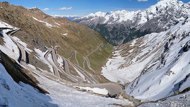 Progettato dall’ingegnere Carlo Donegani e inaugurato nel 1825, lo Stelvio è ancora oggi un capolavoro di ingegneria: 48 tornanti sul versante altoatesino, una sequenza quasi ipnotica di curve numerate che salgono ordinate verso il cielo. Dal lato lombardo, partendo da Bormio, la salita è più fluida ma non meno spettacolare, incastonata tra pareti rocciose, gallerie scavate nella pietra e cambi di ritmo continui.