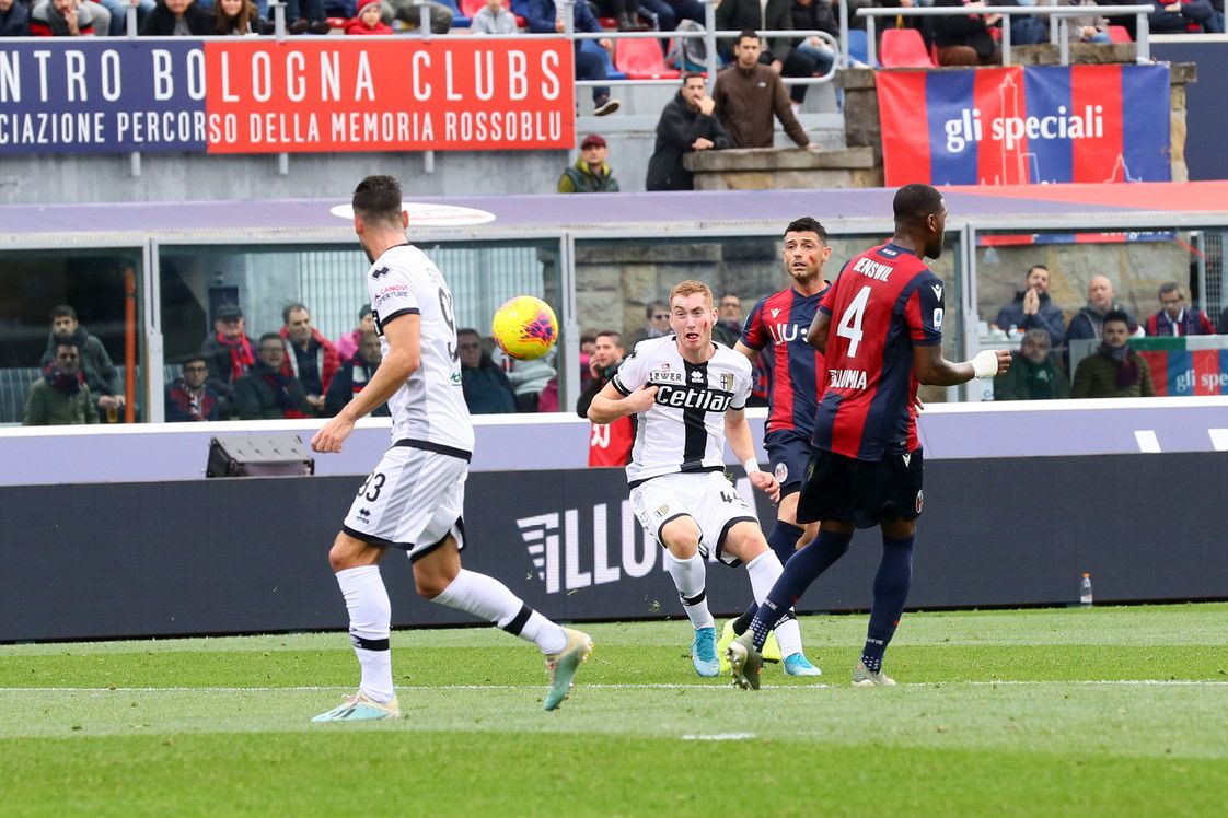 Un motivo di gioco che ha portato al vantaggio di Kulusevski al 17' con una gran giocata di sinistro all'angolino, ripetuta nella ripresa al 62' ma con il pallone stampato sul palo. Sopra di un gol il Parma si è arroccato al limite della propria area lasciando il pallone al Bologna e costringendo gli esterni, soprattutto Orsolini, a crossare una grande quantità di palloni in area dove Bruno Alves e Dermaku hanno quasi sempre avuto la meglio. Quasi, perché al 40' proprio su un pallone alto da corner è arrivato il colpo di testa vincente spizzato da Palacio.