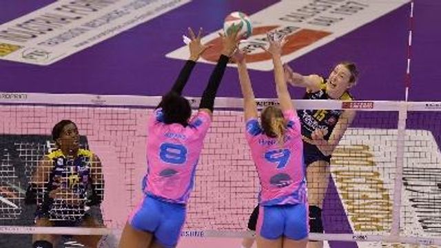 La Serie A1 di volley femminile ha la sua prima finalista dei playoff: è la Imoco Conegliano, che batte 3-1 la Saugella Monza (22-25, 25-20, 25-19, 25-14). Le campionesse d'Italia, già sul 2-0 nella serie, soffrono nel primo parziale, pagando qualche disattenzione di troppo. Salgono poi in cattedra Robin de Kruijf e Samanta Fabris: Monza cade sotto i loro colpi e crolla nel quarto set. La Imoco attende in finale la vincitrice tra Novara e Scandicci.