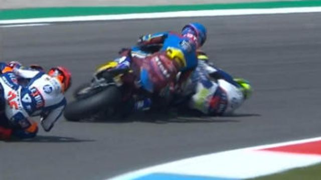 Decisivo, per il GP e per la classifica, il contatto finale tra Lorenzo Baldassarri e l'ormai ex leader del campionato Alex Marquez: il marchigiano ha forzato un ingresso in curva, ha perso l'anteriore e si è steso, trascinando con sé il fratellino di Marc. Furibonda la sua reazione mentre i due si trovavano insieme nella ghiaia, più pacata una volta che si sono ritrovati ai box per chiarire l'incidente. Sta di fatto che ora, dopo una gara tutto sommato anonima e chiusa ai piedi del podio, Thomas Luthi è di nuovo in testa alla classifica e che i distacchi sono decisamente contenuti.