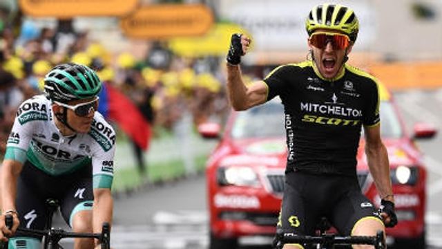 L’australiano prende un discreto margine sugli attaccanti superstiti e inizia davanti a tutti la salita dell’ Hourquette d’Anciezan che, più indietro, condanna subito Vincenzo Nibali che si stacca dal gruppo, complice anche una notte complicata e condizioni fisiche non al meglio. Matteo Trentin è il primo ad andare a riprendere Clarke, dietro di loro però è Simon Yates a risalire con forza, accompagnato da Muhlberger. I due si mettono davanti a tutti e alle loro spalle prova a resistere Pello Bilbao. Yates tenta un’altra accelerata prima del GPM per non trascinarsi dietro lo spagnolo dell’Astana, ma in discesa si forma il terzetto che si giocherà la tappa, formato dall’inglese, da Muhlberger e da Bilbao appunto. Dietro di loro gli altri attaccanti desistono dal tentativo di rientrare, mentre il gruppo continua nella sua giornata di calma assoluta. Ai 200 metri dal traguardo Yates, il più rapido tra i tre in testa, parte con la sua volata e si impone davanti a Muhlberger e Pello Bilbao. Il gruppo della maglia gialla, che resta ad Alaphilippe, arriva con un ritardo di 9’30”: tutti i big pensano a preservare energie per quel che arriverà nei prossimi giorni.