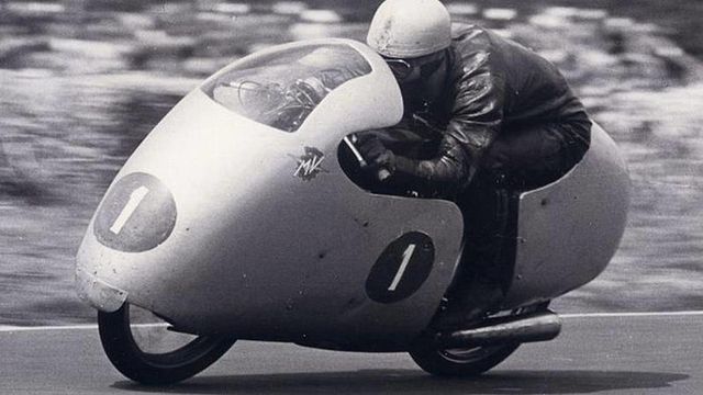 Dopo aver disputato un Mondiale in 125, nella stagione 1950 passò alla Mondial, con cui riuscì a conquistare la prima vittoria iridata e a giungere secondo nella classifica finale. La sua epopea ebbe inizio nel 1951, in un crescendo continuo di risultati che lo porteranno a vincere, in 10 stagioni, 9 campionati mondiali di velocità.