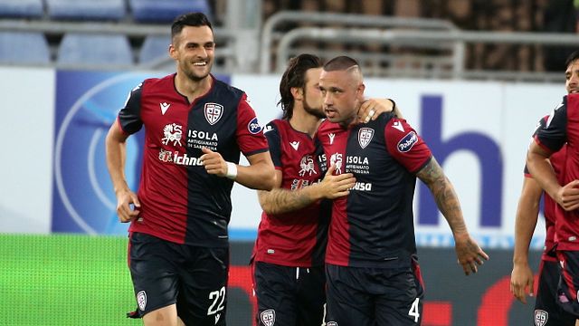 Cagliari (3-4-1-2): Cragno 6,5; Walukiewicz 6, Ceppitelli 6, Carboni 7 (42' st Cacciatore sv); Mattiello 6,5 (14' st Ionita 6), Nandez 7, Rog 6, Lykogiannis 6 (21' st Pellegrini 6,5); Nainggolan 7,5 (14' st Cigarini 5,5); Simeone 7, João Pedro 7 (42' st Ragatzu sv). A disp.: Rafael, Olsen, Paloschi, Boccia, Lombardi, Ladinetti, Gagliano. All.: Zenga 7
