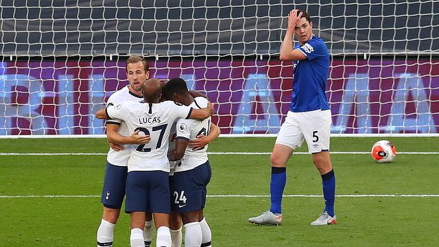Una sfida tra due maestri della panchina e dalle bacheche ricchissime: l'incrocio londinese tra José Mourinho e Carlo Ancelotti dà però vita a un match tutt'altro che emozionante, con un Tottenham che ci prova di più (deve del resto mettersi alle spalle il disastroso ko di Sheffield) ma che tutto sommato crea ben poche occasioni degne di tal nome. E, alla fine, strappa i tre punti solo grazie a un provvidenziale autogol. Si ferma invece l'Everton, che non perdeva da marzo e che dalla ripresa della Premier League aveva raccolto due vittorie e un pareggio (ma nel derby contro il formidabile Liverpool). L'inizio del match è a ritmi lentissimi, tanto che solo dopo dieci minuti abbondanti arriva il primo squillo con Son. Poi, all'improvviso, gli Spurs accelerano: al 21' Lucas Moura si inventa un destro da lontano che sibila poco oltre il palo, al 24' c'è invece il gol decisivo. Azione tambureggiante del Tottenham, con Son che viene fermato due volte, quindi tocca a Kane e infine a Lo Celso: la conclusione dell'argentino colpisce però il petto di Keane e si infila in rete spiazzando Pickford.