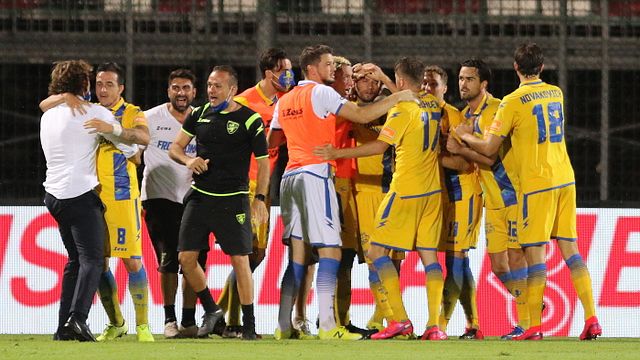 Scoppiettante primo turno di playoff al Tombolato, dove il Frosinone arpiona le semifinali per la promozione in Serie A battendo per 3-2 il Cittadella nel recupero dei supplementari. Al doppio vantaggio granata (Diaw segna su rigore al 5' e in contropiede a fine primo tempo) rispondono Salvi prima dell'intervallo e Dionisi al 51'. Fioccano le occasioni per entrambe le squadre, ma è Ciano al 121' a regalare ai ciociari la sfida contro il Pordenone.