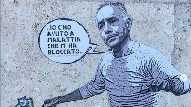 L'ormai ex presidente della As Roma James Pallotta nei panni dell"Americano a Roma' Nando Mericoni che con una valigia di dollari (con l'effigie di Topolino) lascia la città per tornare a Boston: "Io c'ho avuto 'a malattia che m'ha bloccato" dice in un fumetto, ripetendo la celebre battuta di Alberto Sordi. È il nuovo murales apparso a Roma a firma di Harry Greb, lo street artist che con le sue opere spesso 'commenta' sui muri della Capitale gli eventi di attualità, dall'emergenza Covid a George Floyd. Il murales è stato realizzato a Ponte Duca D'Aosta, proprio di fronte allo Stadio Olimpico. "James Pallotta nei panni di Alberto Sordi nel film 'Un americano a Roma' con una battuta presa in prestito da Nando Mericoni - spiega l'artista - L'opera allude all'esperienza romana di James Pallotta terminata dopo 10 anni di insuccessi".