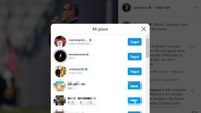 Dopo l'esonero di Maurizio Sarri, dai social arrivano alcune reazioni interessanti sulla fine della storia tra il tecnico e la Juve. In particolare sono tre i "commenti" che hanno attirato subito l'attenzione: i "mi piace" di Douglas Costa, Mario Mandzukic ed Emre Can all'annuncio ufficiale del club bianconero. Tre "scontenti" che non hanno tardato a manifestare la loro approvazione alla cacciata dell'allenatore. E se quelli del centrocampista tedesco e dell'attaccante croato non sorprendono per il pessimo feeling con Sarri e i relativi addii a Torino, a colpire è soprattutto la soddisfazione del brasiliano alla notizia dell'esonero. Una reazione che, al netto di qualche screzio con l'esterno durante la stagione, forse svela palesemente qualche crepa importante nello spogliatoio tra i giocatori e l'ex allenatore bianconero.