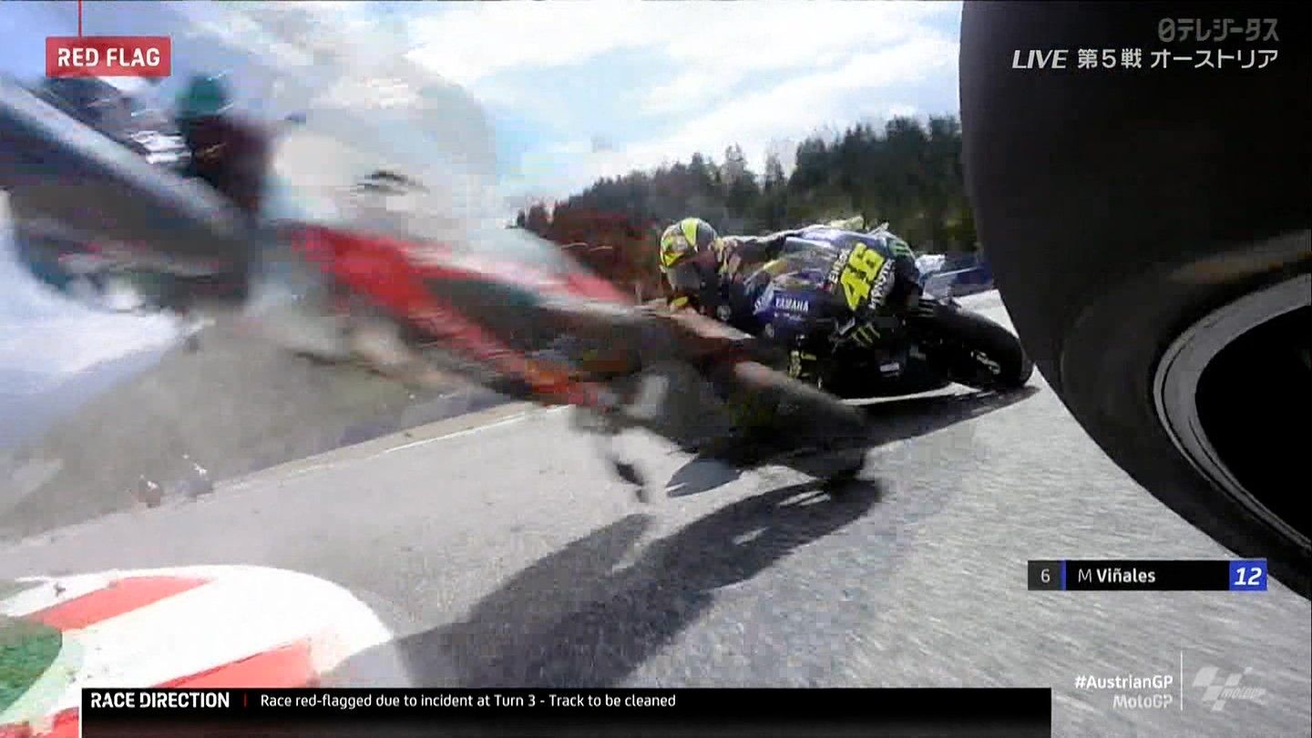 Ancora tanta paura al Red Bull Ring. L'errore di valutazione di Zarco ed il successivo impatto tremendo con la moto di Franco Morbidelli hanno portato alla sospensione momentanea della gara. Il francese, che ha allargato la traiettoria, ha centrato la moto di "Morbido" che arrivava a gran velocità da dietro non lasciandogli scampo. Le due moto sono volate via fuori dalla pista, ma dopo l'impatto con le protezioni entrambe sono rientrate sul tracciato.