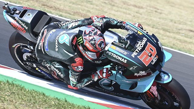 Franco Morbidelli è pronto per provarci ancora. Dopo il primo successo in MotoGP di domenica scorsa, il pilota italiano si candida al bis ma sulla sua strada trova subito il compagno di squadra Fabio Quartararo che lo batte per novanta millesimi di secondo nel primo turno di prove libere del GP dell'Emilia-Romagna. Ancora una volta le due M1 "satellite" del team Petronas SRT surclassano quelle "factory" di Maverick Vinales e di Valentino Rossi che non vanno al di là del 13esimo e del 17esimo tempo, staccati rispettivamente di 868 millesimi e di un secondo e 111 millesimi.