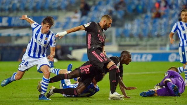 Non era certo il debutto che il Real Madrid si sarebbe augurato quello che si consuma al Reale Seguros Stadium di San Sebastian, dove non solo il Real Madrid arriva al triplice fischio finale senza gol all'attivo, ma ha anche motivi per tirare un sospiro di sollievo. La partita è infatti in mano ai Blancos, che però non trovano l'affondo decisivo e rischiano anche qualcosa quando i baschi passano al contrattacco. Grande protagonista è comunque il portiere di casa Remiro, che già al quarto d'ora dice di no a Benzema dopo un assolo del francese. Poi sono i difensori Varane e Ramos a provarci senza fortuna. Prima dell'intervallo Vinicius e Benzema si rendono pericolosi, ma manca le precisione. E proprio a pochi secondi dalla conclusione del primo tempo Isak mostra che i baschi non sono fuori dal match, costringendo Courtois alla prima grande parata della sua partita.