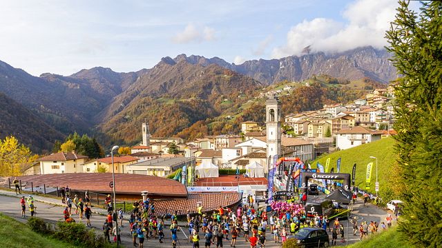 Il tempo di parcheggiare e sono già al villaggio-gara, ancora in allestimento. Mario Poletti, “guru” di Fly-Up Sport, ed il suo intero staff sono all’opera dalle prime luci del giorno per preparare una degna accoglienza ai duecentocinquanta iscritti della Val del Riso Trail. Tanti quanti quelli della Valzurio Trail alla quale avevo preso parte sei settimane fa, non molto lontano da qui (ma sull’altro versante della Val Seriana), prima di saltare la Sei Comuni Presolana Trail: appuntamento centrale di quello che - nella mia personalissima agenda - ho definito il “trittico orobico” autunnale che qui giunge appunto, alla sua conclusione. Con il fiato sospeso, visto che l’imminenza del nuovo DPCM ha costretto Mario ed i suoi ad un impegno febbrile fino alle ore (piccole!) immediatamente precedenti questa domenica che pian piano si sta liberando dei nuvoloni (anche metaforici, appunto) per lasciare spazio ad una bella domenica autunnale, di sport.