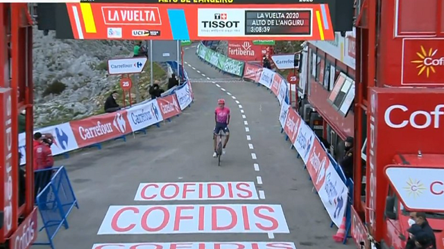 Proprio il britannico dell'EF Pro Cycling, con uno scatto poderoso, anticipa tutti nel tratto finale della salita dell'Angliru e taglia il traguardo in discesa in solitaria, firmando la sua prima vittoria di tappa nella Vuelta 2020. Carapaz arriva quarto, mentre Roglic è quinto a 10" dall'ecuadoriano della Ineos Grenadiers, che si riprende quindi la maglia rossa. In classifica generale, però, si avvicina proprio Hugh Carthy, che oltre a domare l'Angliru si prende anche il terzo posto (superato Martin) a 32" da Carapaz, candidandosi al ruolo di terzo incomodo per la vittoria finale proprio alla vigilia dell'ultima settimana della 75esima edizione della Vuelta.