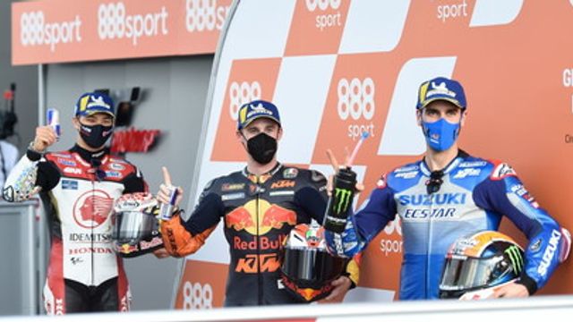 In una pista bagnata dalla pioggia è Pol Espargaro a sorridere nella sessione di qualifiche. Il pilota KTM conquista al seconda pole position della stagione ed è pronto a combattere sin dalle prime curve per conquistare un podio nel GP d'Europa a Valencia: "E' stata molto difficile, è stata una pole molto veloce e non pensavo di poterci riuscire". Rins, secondo in griglia, non ha nascosti i problemi: "Fatica col bagnato".