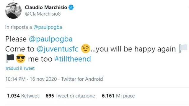 “Non ho mai vissuto un periodo così complicato nella mia carriera sportiva. Giocare con la Nazionale è stata una boccata d’ossigeno per me”. Dal ritiro della Francia, Paul Pogba ha confermato senza troppi giri di parole quanto aveva già spiegato il ct Deschamps nei giorni scorsi (“Non è felice al Manchester United”) e le sue frasi hanno immediatamente riacceso il mercato. Da quando ha lasciato la Juventus, i tifosi bianconeri hanno sempre sognato il ritorno del 'Polpo' e ad infiammarli ci ha pensato Claudio Marchisio, che ha mandato un chiaro segnale all’ex compagno: “Vieni alla Juve”.