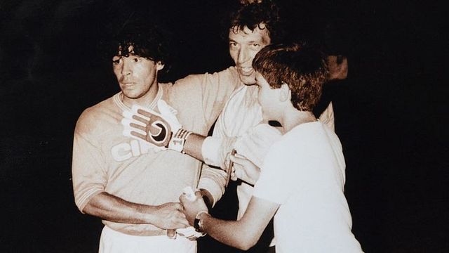 Accade il 7 agosto 1984, in occasione di un’amichevole tra il Grosseto, che all’epoca milita nel campionato Promozione, e il Napoli. Gli azzurri allenati da Rino Marchesi, in quell’estate dell’84, sono in ritiro a Castel del Piano, sulle colline del Monte Amiata, dove il sindaco Alvaro Giannelli è costretto ad allestire un campeggio per ospitare la marea di tifosi partenopei giunti per vedere i primi giorni nel Napoli dell’asso argentino, appena sbarcato dal Barcellona.