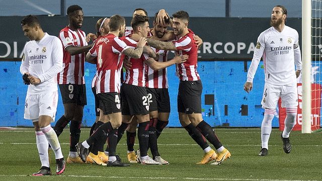 Sorpresa nella seconda semifinale della Supercoppa di Spagna: l'Athletic Bilbao batte 2-1 il Real Madrid e vola in finale, dove affronterà il Barcellona. A Malaga, decide la doppietta nel primo tempo di Raúl García, in gol al 18' e al 38' su rigore. Nella ripresa, i blancos colpiscono due legni con Asensio e accorciano le distanze con Benzema (73'), ma è troppo tardi: domenica, a Siviglia, saranno i baschi a contendere il trofeo a Messi e compagni.