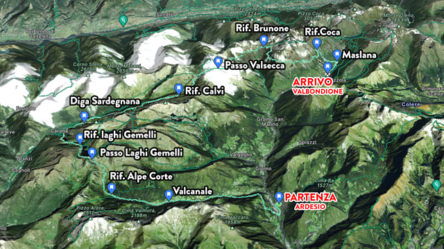 Il primo frazionista avrebbe affrontato la Skymarathon (42 chilometri) con partenza da Valcanale e passaggio del testimone al Rifugio Coca. La seconda prova – la Skyrace da 30 chilometri, si sarebbe chiusa al Rifugio Albani dopo aver toccato il Rifugio Curò. La terza prova sarebbe stata la più tecnica: una Sky Climbing sul sentiero attrezzato del Passo della Porta, con passaggio al monte Visolo prima di attraversare la linea del traguardo al Passo della Presolana.