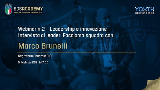 “FIGC Youth Lab”, il laboratorio di innovazione e calcio del Settore Giovanile e Scolastico della FIGC, ha inaugurato le “Interviste al Leader”, facendo squadra con Marco Brunelli (Segretario Generale FIGC), che ha condiviso le sue riflessioni analitiche proprio sul tema della leadership, del calcio e del futuro nel webinar-incontro con 28 giovani (di cui 5 donne) selezionati dal Settore Giovanile e Scolastico per partecipare ad un programma di formazione in quanto eccellenze territoriali, innovatori/innovatrici e protagonisti/e del calcio giovanile.