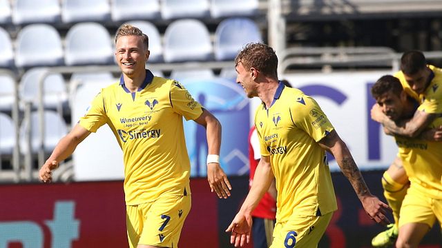 Successo fondamentale per il Verona che, grazie al 2-0 sul Cagliari (sempre terzultimo), sorpassa il Sassuolo in ottava posizione con 41 punti. Nel giro di pochi minuti i due portieri compiono una grande parata ciascuno: Cragno respinge la bella punizione di Veloso, Silvestri devia la conclusione di Joao Pedro. Al 23’ Dimarco trova l’assist per Lasagna il cui sinistro al volo termina alto di poco. Al termine del primo tempo Nandez scappa via sulla destra, il cross attraversa l’area e Lykogiannis calcia altissimo da ottima posizione. Nel migliore momento dei sardi, il punteggio viene sbloccato al 54’: Veloso appoggia benissimo a Barak che da fuori la piazza nell’angolino. Al 61’, doppia occasione cagliaritana; Lykogiannis calcia, respinge Silvestri poi palla a Cerri che calcia addosso a Lazovic. Al 65’ Simeone colpisce un palo clamoroso con un piattone destro in scivolata. Nel finale Pavoletti non trova lo specchio della porta. Lasagna chiude la sfida in pieno recupero in contropiede.