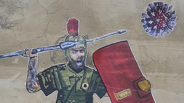 Daniele De Rossi in versione gladiatore per combattere il maledetto virus. Questo l'omaggio che alcuni tifosi hanno fatto all'ex capitano giallorosso che è stato dimesso dall'ospedale dopo la positività al Covid-19 e ora continua a lottare da casa. Proprio sotto l'abitazione dell'ex centrocampista è apparso questo disegno.