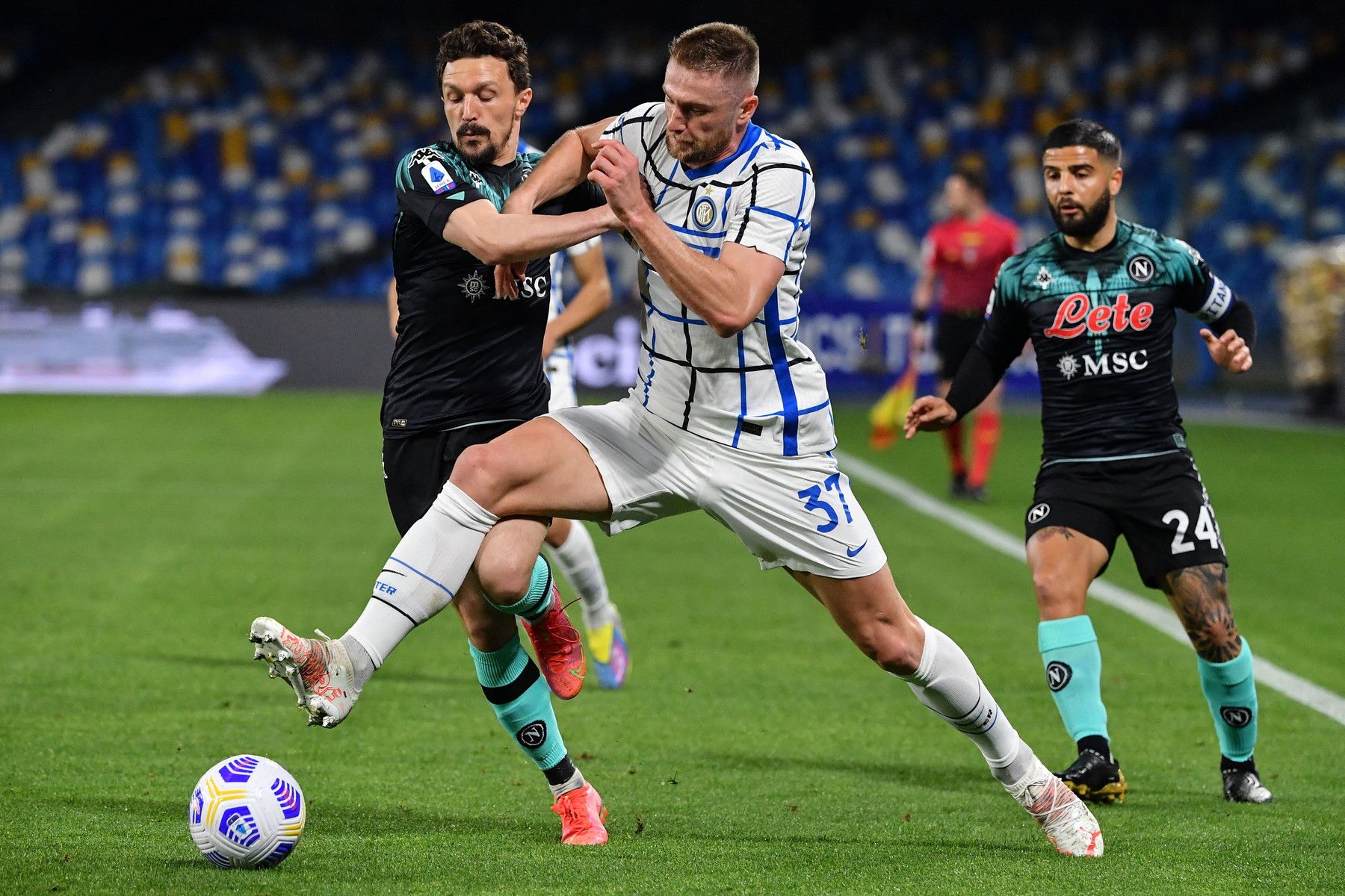 Finisce 1-1 la sfida tra Napoli e Inter, posticipo della 31esima giornata di Serie A. I padroni di casa giocano meglio nel primo tempo e sbloccano il match al 36' grazie a un clamoroso autogol di Handanovic. Nella ripresa è l'Inter a fare la partita, ma dopo aver pescato l'1-1 con Eriksen (55') non trova il colpo del ko e si accontenta del pari. Nerazzurri sempre in vetta (+9 sul Milan), i partenopei mancano l'aggancio alla Juve al quarto posto.