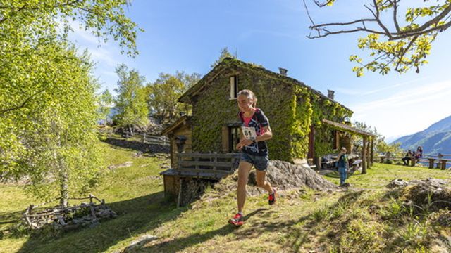 Separati da “gabbie” fettucciate e ordinatamente disposte sui bollini dipinti sull’asfalto, gli atleti sono partiti (tutti insieme) dalla Colonia Fluviale di Morbegno, cittadina alal porte della Valtellina, sulla cui superficie gli atleti stessi hanno potuto entrare sostare per il tempo strettamente necessario per sbrigare le procedure standard pre e post-gara. Un paio di chilometri in piano per sfoltire il gruppo e ridurre al minimo gli “incolonnamenti” all’attacco dei primi tratti di sentiero, inevitabilmente angusti. Prima breve salita nella frazione di Campovico, per raggiungere la località Torchi Bianchi. Dopo una tecnica discesa verso l’abitato di Paniga, rotta sulla frazione di Desco (rilevamento del primo tempo intermedio), da dove ha preso inizio la scalata verso il GPM di giornata, posto sulla vetta boscosa della Colmen di Dazio. Da lì, una discesa inizialmente molto corribile, poi più tecnica (con il passaggio su facili ma tutt'altro che banali roccette) e poi di nuovo tutta da spingere fino al paesino di Dazio. Attraversato il quale, pochi tratti di asfalto alternati a sentiero ed acciottolato hanno catapultato gli atleti verso la picchiata finale sul prato della Colonia e la linea del traguardo.