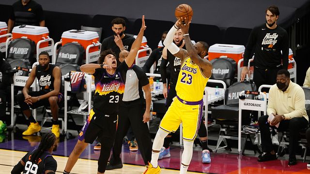 Ci si aspettava una risposta dei campioni in carica, ed in particolare dei due trascinatori dei gialloviola, assenti ingiustificati all'esordio. E puntualmente, in gara-2, Anthony Davis e LeBron James si riscattano pienamente dopo i 31 punti complessivi al debutto in questi playoff e ne firmano 57, con 34 firmati dall'ex Pelicans, che dopo aver ammesso le sue pesanti colpe per il 90-99 di gara-1 mette a referto anche 10 rimbalzi e chiude in doppia doppia, mentre l'ex Cleveland arriva a 23 con 4 rimbalzi e 9 assist. Numeri che aiutano i Lakers a pareggiare la serie, ora sull'1-1 grazie al 109-102 contro Phoenix maturato nel corso del terzo quarto. Dopo il 53-47 di fine primo tempo, infatti, i campioni in carica arrivano fino al +15, rischiano la rimonta, ma vincono nel finale grazie ai canestri di LeBron James, aiutato, oltre che dal ritrovato Davis, anche da Schroder: 24 punti, 3 rimbalzi e 3 assist. Stavolta, il solito Devin Booker, pur autore di 31 punti e ben aiutato da Ayton (22) e Payne (19), non riesce a trascinare i suoi, con Phoenix che paga anche i problemi fisici di Chris Paul, in campo per 23 minuti ma con appena 6 punti, 3 rimbalzi e 5 assist. Adesso, la contesa si sposta a Los Angeles, per gara-3 e gara-4, con i Lakers che grazie a questa vittoria invertono momentaneamente il fattore campo.