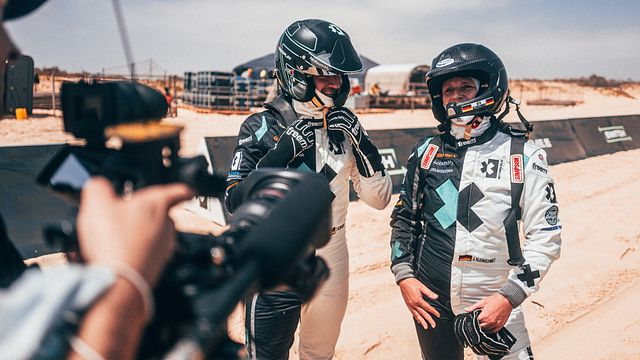Dall'exploit della 58enne campionessa di Colonia sono passati vent'anni: alla guida della Mitsubishi ufficiale, Jutta si impose approfittando anche della squalifica per condotta antisportiva di Jean-Louis Schlesser in quella che sarebbe rimasta l'ultima edizione della gara (la 23esima) a scattare da Parigi ed a terminare a Dakar. E se allora la Kleinschmidt divideva l'abitacolo della Pajero giapponese con Andreas Schulz, anche oggi "al suo fianco" - ma nel ruolo di consulente dell'organizzazione - c'è un connazionale: si tratta di Timo Scheider, pilota del DTM e del Mondiale Rallycross. Nello staff Extreme E (la Kleinschmidt è entrata a farne parte da poco più di due mesi) entrambi hanno un ruolo doppio: essendo infatti ogni squadra necessariamente composta da un uomo e da una donna, in caso di forfait in qualsiasi squadra, Jutta e Timo sono sempre pronti a saltare sull'Odyssey 21 per tappare la falla e consentire al team rimasto "zoppo" di prendere parte alla gara.